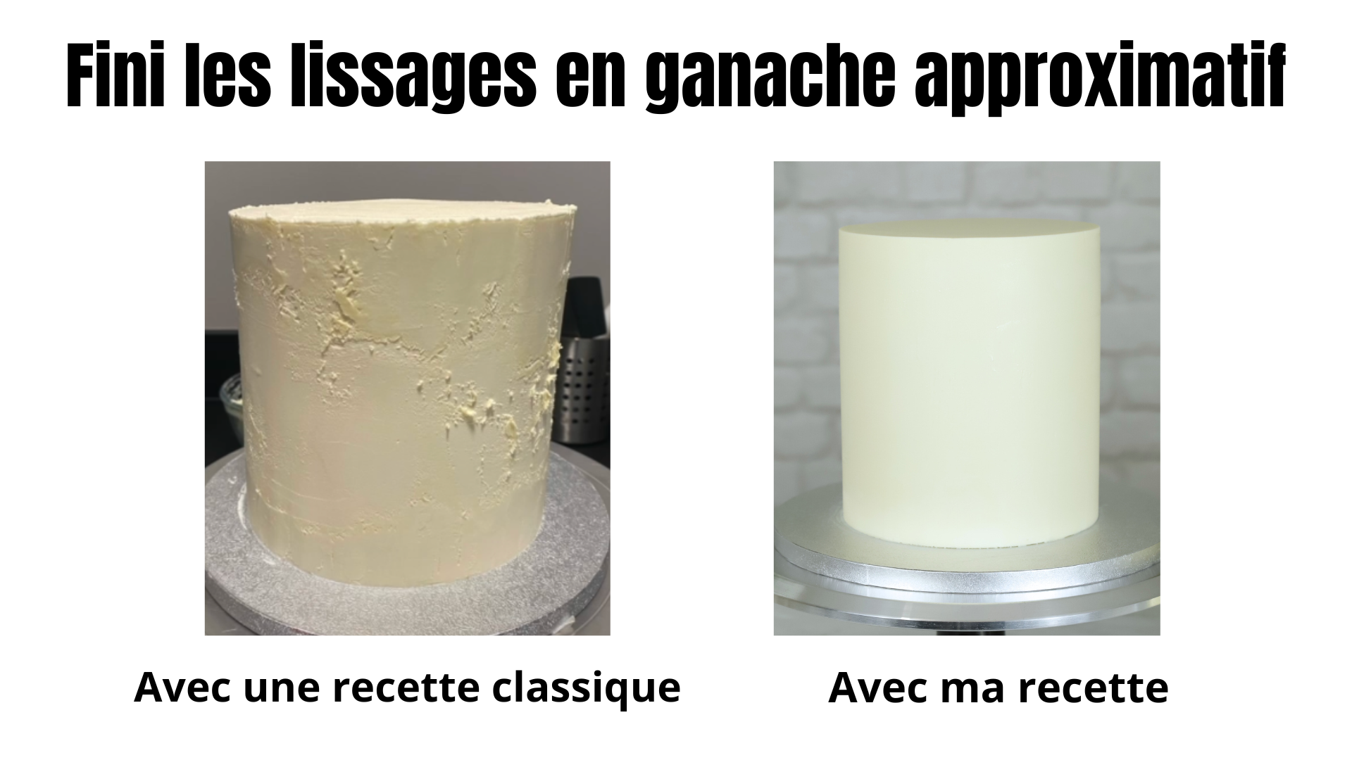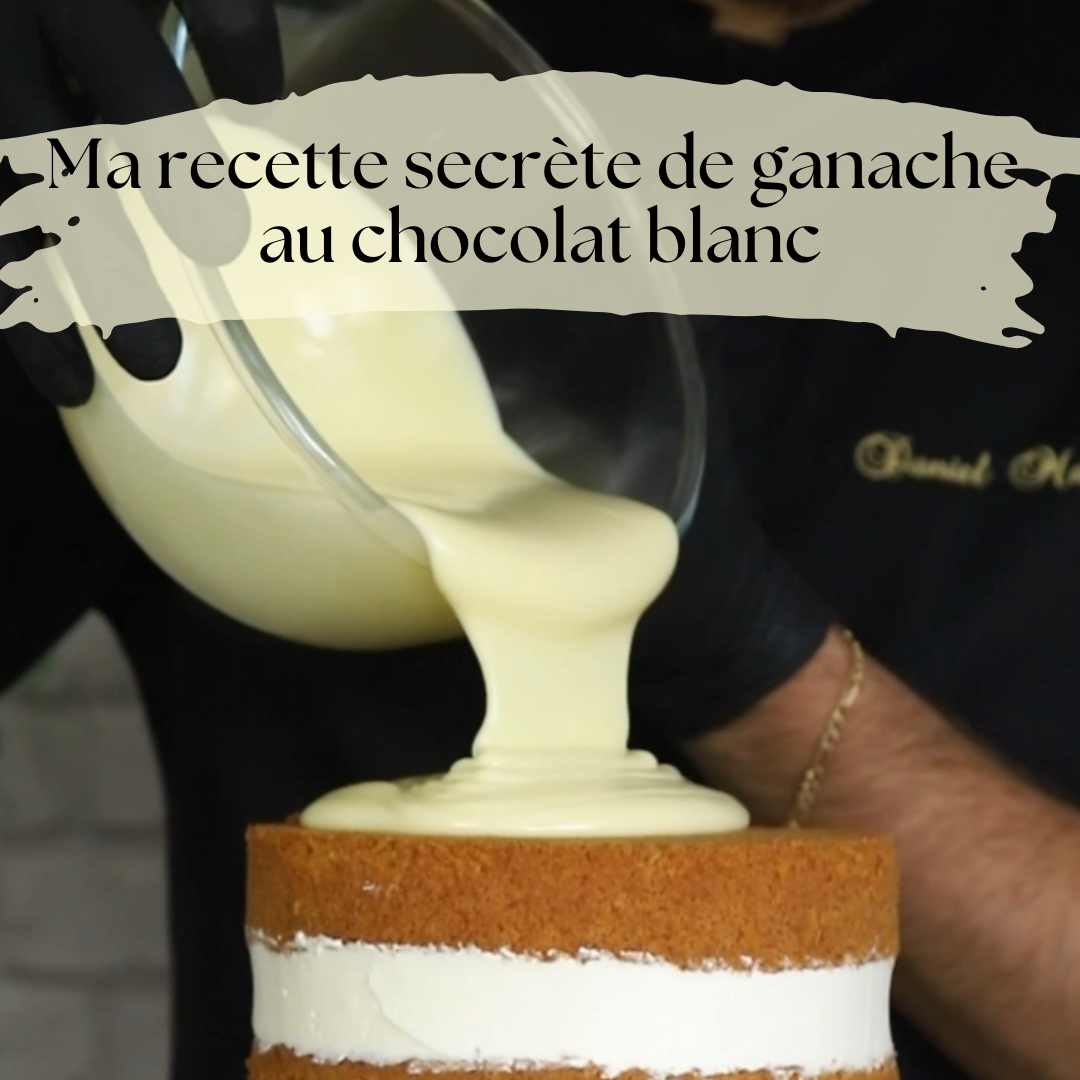 Je te dévoilerai enfin ma tant demandée recette de ganache de recouvrement au chocolat blanc ! La seule ganache qui t'offrira un résultat aussi net et solide même à température ambiante .