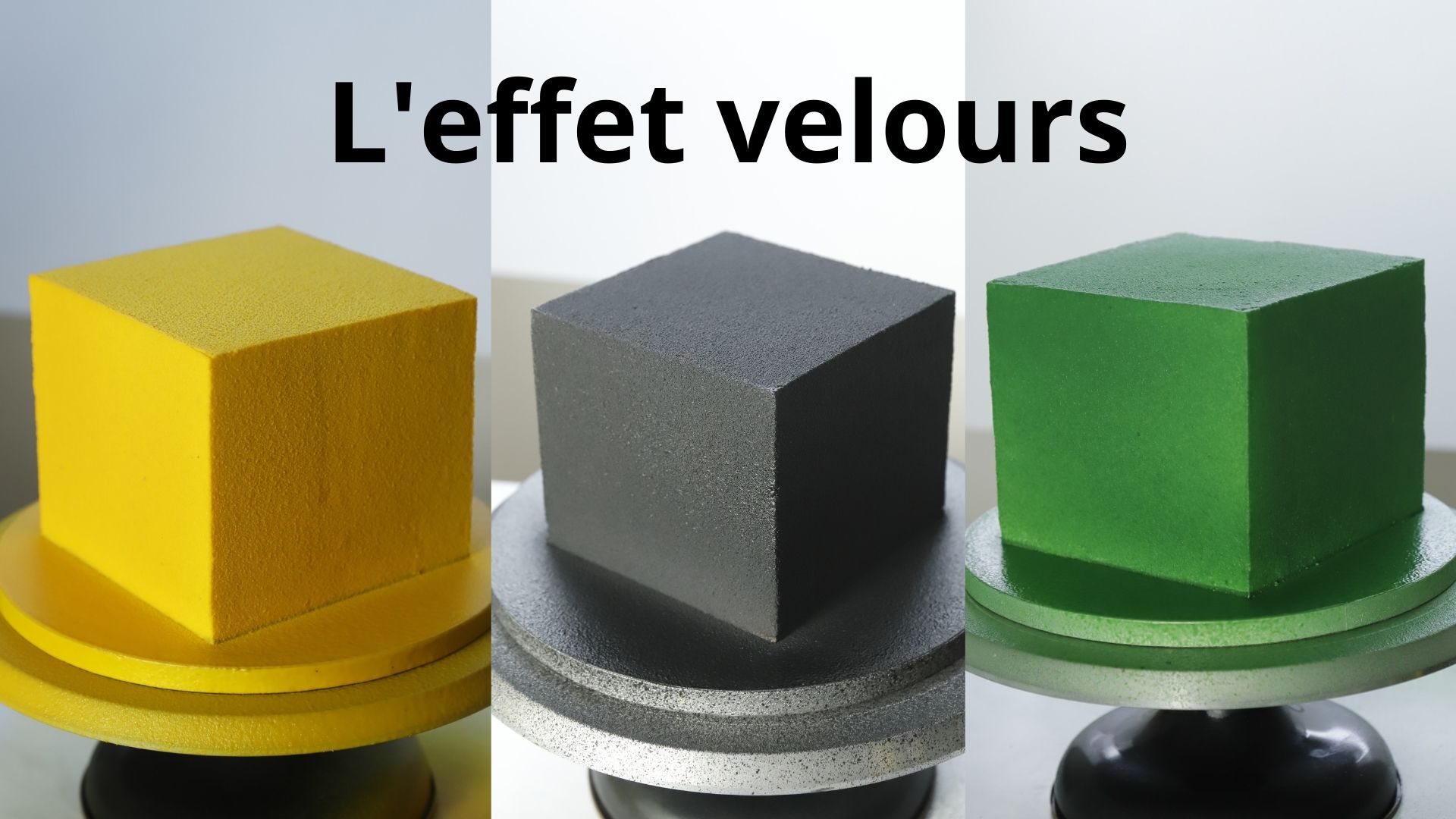 L'effet velours très utilisé sur les entremets mais très peu en cake design . À la fin de cette formation tu sauras comment le réaliser toi même et tu pourras jouer avec les couleurs pour donner un look épuré à tes gâteaux .